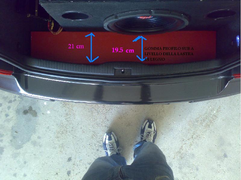 Quindi devo trovare un posto che si veda, sarei anche disposta a girare la cassa con il subwoofer rivolto verso l'alto e attaccare il sub sulla parete verso il baule.